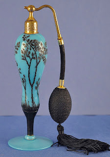Some of my windowsills are full of green and blue glass bottles, big ones, heavy ones. Not the delicate little gems that hold perfume but mile high siphon bottles and patent medicine bottles and poison bottles, even a wine bottle or two. They add a splash of vibrant colour to a room when the sun shines through them, casting a doppleganger on the adjacent wall. Recent weeks have seen changes in our house, a major bathroom remodel. I have used neutral warm browns for the tile, floor covering and counter top with a warm peachy-coral tint on the walls. Now it needs color and the blues and greens of some larger atomizers and those siphon bottles seem the perfect solution. So I have moved some of them to that window sill.